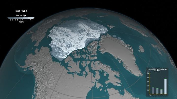 Fotoğraftaki beyaz alan 1984 yılının eylül ayında Kuzey Kutbu’ndaki buz