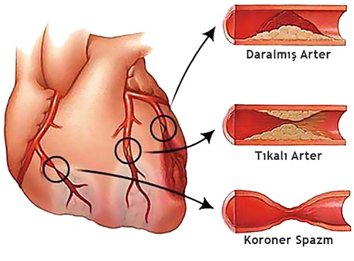 Koroner arterlerinizin (kalbin beslenmesini sağlayan atar damar), tıp dilinde ateroskleroz (damar sertliği) dediğimiz durumun varlığı nedeniyle daralması veya tıkanmasıdır.