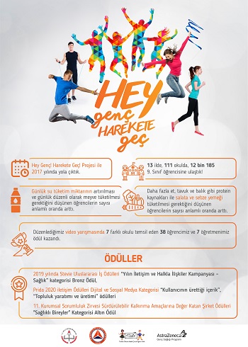 Gençlerin hayatında sağlıklı beslenme bilinci yaratarak fiziksel aktivite ve egzersizin önemini vurgulama ve yaratıcılık becerilerini ortaya çıkarma hedefiyle T.C. Millî Eğitim Bakanlığı, Tüvana Okuma İstekli Çocuk Eğitim Vakfı (TOÇEV), Türkiye Diyabet Vakfı ve AstraZeneca Türkiye iş birliğiyle 2017’de hayata geçirilen “Hey Genç! Harekete Geç!” projesi tamamlandı.