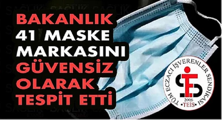 BAKANLIK 41 MASKE MARKASINI GÜVENSİZ OLARAK TESPİT ETTİ