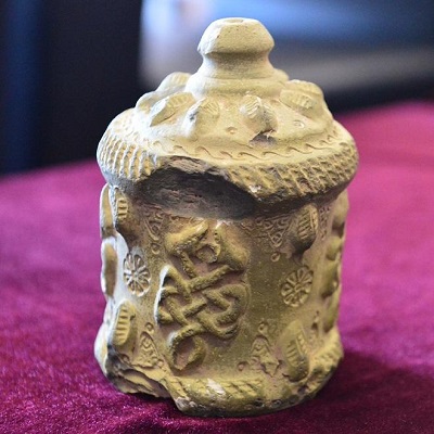 Yaklaşık 15 santim boyundaki silindir gövdeli kabın dış yüzeyinin, birbirine dolanmış ağızları açık yılan kabartmalarıyla süslü olduğunu vurgulayan Önal, yılanın, arkeolojide ölümsüzlüğü temsil ettiğini, bu figürün Selçuklular’daki şifahanelerin yanı sıra Mısır ve Yunan sanatında da şifa ve tıbbın sembolü olarak kullanıldığına dikkati çekti. Kabın pişmiş topraktan yapıldığını ifade eden Önal, kabın ağzındaki küçük deliğin de sıvının dökülmemesi için bir tıpayla kapatıldığının tahmin edildiğini söyledi.