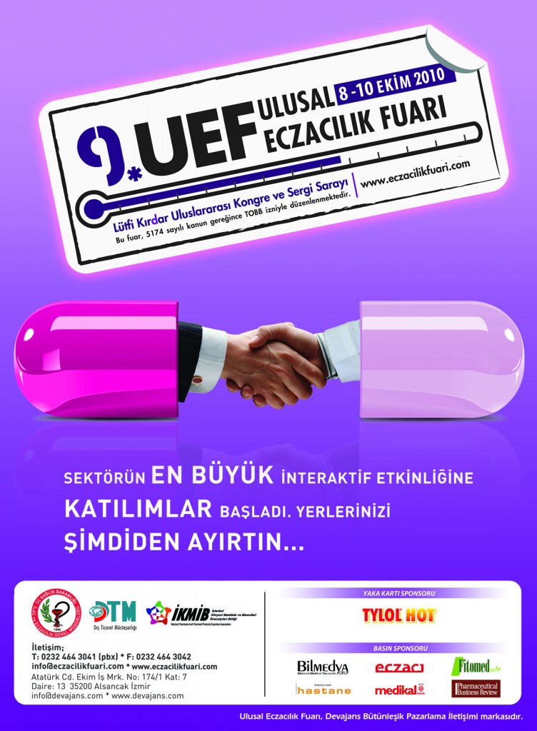 9. Ulusal Eczacılık Fuarı 8- 10 Ekim 2010 tarihinde İstanbul- Lütfi Kırdar Uluslararası Kongre ve Sergi Sarayı’ nda toplanıyor