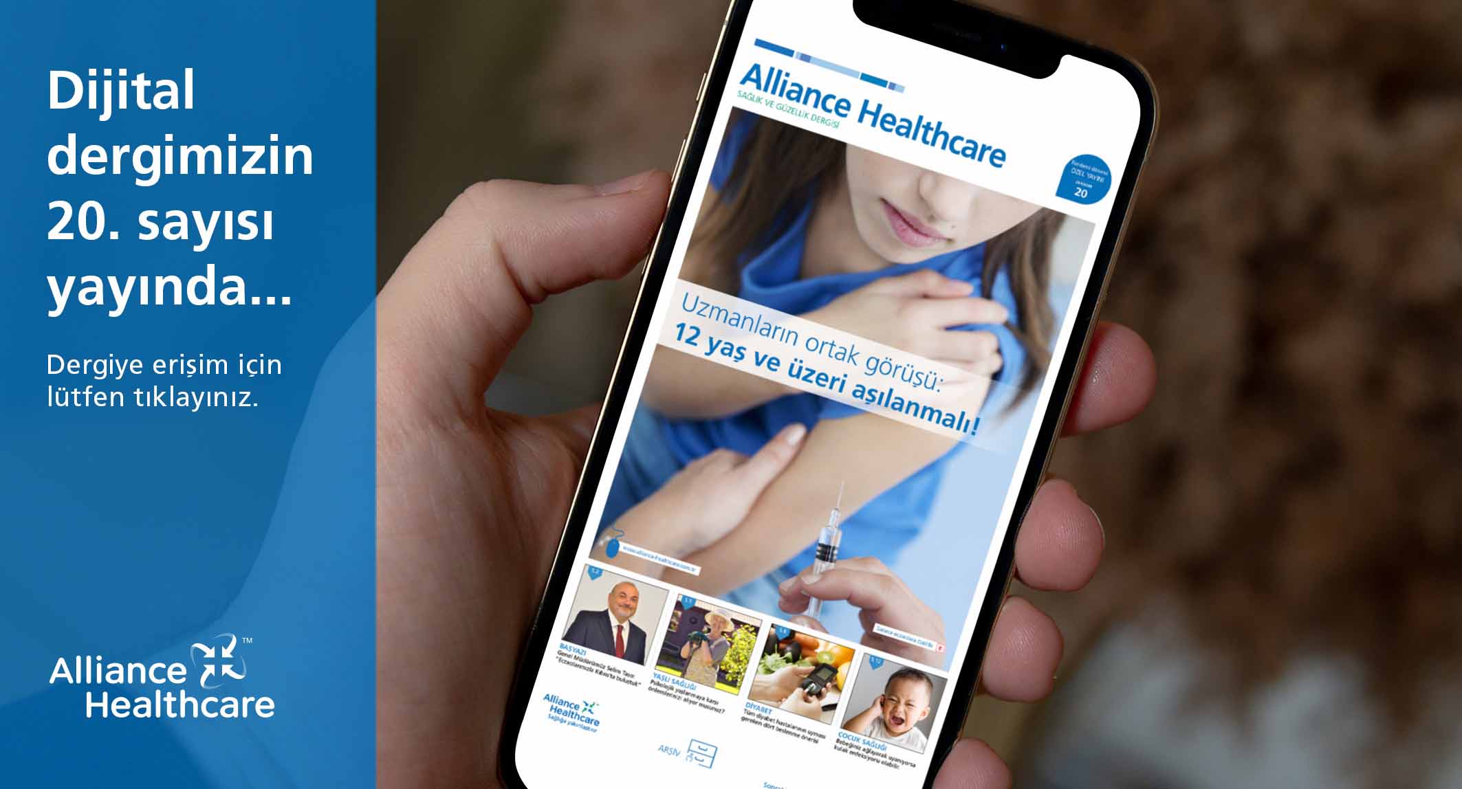 Alliance Healthcare Türkiye'nin aylık olarak yayınladığı dijital derginin 20. sayısında, Covid 19 pandemisine karşı toplumsal bağışıklığı artıracak en önemli adımlardan olan 12 yaş üstü çocukların aşılanması ile ilgili bilinmesi gerekenler, bebek ve çocuklar için devam eden aşı çalışmalarında gelinen son durum, beslenme ve sağlıklı yaşama dair ipuçları, diyabetik beslenmede dikkat edilmesi gerekenler gibi birçok konuda zengin bir içerik sizleri bekliyor.