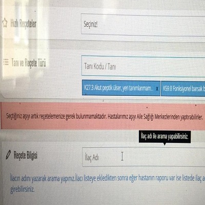 ! Doktor ekranına, “Seçtiğiniz aşıyı artık reçetelemenize gerek bulunmamaktadır. Hastalarımız aşıyı Aile Sağlık Merkezlerimizden yaptırabilirler” uyarısı çıkmaya başladı.