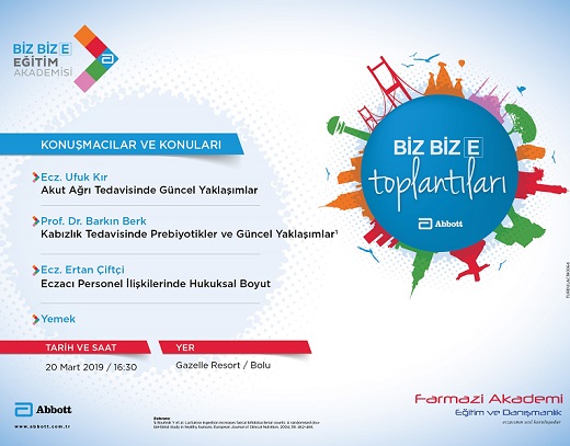 Abbott ve Farmazi Akademi’nin 20 Mart 2019 Çarşamba günü saat 16:30’da, Gazelle Resort-Bolu’da düzenlediği yemekli eğitim toplantısına davetlisiniz.