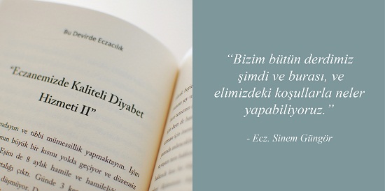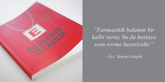 Sinem Güngör: Tecrübe var, bilgi var, motivasyon var. Farklı şeylerin bir arada yoğrulup ortaya birşey çıkması var. Yani aslında bu kitapta bilinç var. Etkin ve etik eczacılık bilinci diyebilirim buna. Biz bunu oturtabilirsek döngüyü tamamlayabiliriz. Olması gereken bu. Şikâyet ederek birşeyi değiştiremezsiniz. Sadece maddeleri, materyalleri değiştirerek bir yere kadar değişebilirsiniz. Çevrenizdeki insanların kalitesi arttığında bir yere kadar değişebilirsiniz. Ama kendinizi dönüştürdüğünüzde tüm bunları değiştirebilirsiniz.