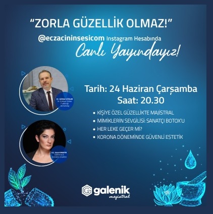 Galenik Ecza Pazarlama Direktörü Ecz. Gaye Karaata, Dermatologist Dr. Gökhan Gökler’i Eczacının Sesi Instagram hesabından yapılacak canlı yayında ağırlayacak.