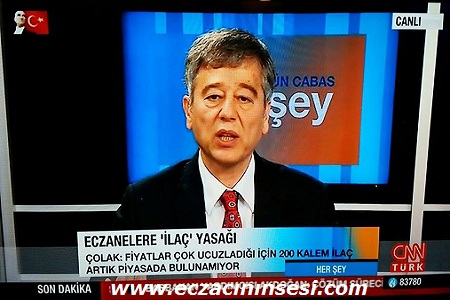 Türk Eczacıları Birliği Başkanı Ecz. Erdoğan Çolak CNN TÜRK canlı yayınında (23 Nisan 2015) Mirgün Cabas la Her Şey programına konuk oldu.