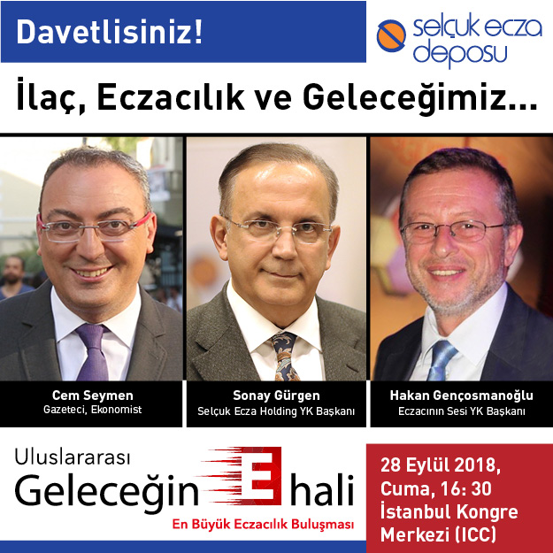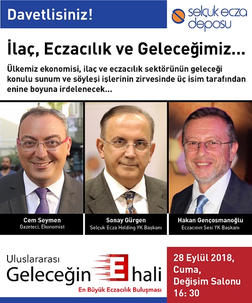 Selçuk Ecza Deposu’ nun gerçekleştireceği, “İlaç, Eczacılık Ve Geleceğimiz” başlıklı özel etkinlikte, Gazeteci- Ekonomist Cem Seymen kürsü alarak gündeme ilişkin bir sunum yapacak. Cem Seymen sunumunun hemen ardından Selçuk Ecza Holding Yönetim Kurulu Başkanı Sonay Gürgen ile Eczacının Sesi Yayın Kurulu Başkanı Hakan Gençosmanoğlu bir sahne söyleşisi gerçekleştirecekler. Sonay Gürgen, Hakan Gençosmanoğlu’ nun İlaç ve Eczacılık’ ın gündemine, geleceğine ilişkin sorularını yanıtlayacak.