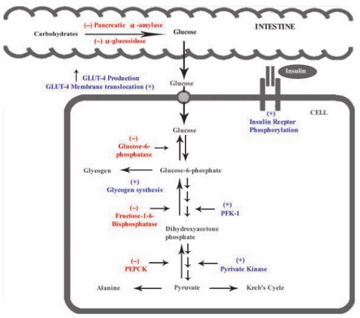 · İnsülin reseptör fosfatazların inhibisyonu sonucu insülin reseptör fonksiyonunun artmasına ve insülin reseptör bloke edici enzim inhibitörünün bloke edilmesine bağlanmaktadır.
