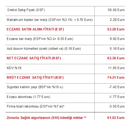 Reçeteli bir ilacın fiyatlandırma örneğine bakarsak: