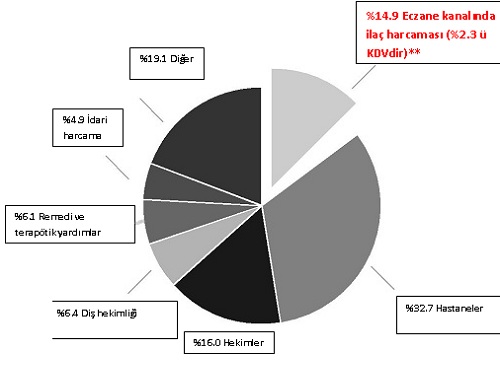 Ülke genelinde zorunlu sağlık sigortası (SHI)* verilerine bakarsak 2014 yılı için toplam 205.33 milyar Euro’luk harcama yapılmıştır, bunun dağılımı ise aşağıdaki şekilde detaylı olarak gösterilmiştir
