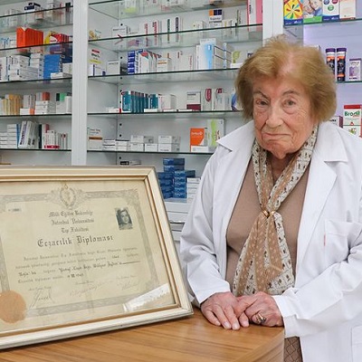 İstanbul’un en yaşlı eczacısı 95 yaşındaki Gülzar Aydın, 74 yıldır mesleğini büyük bir şevk ve heyecanla sürdürüyor.