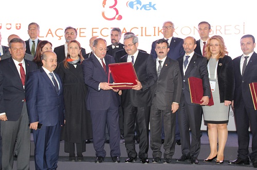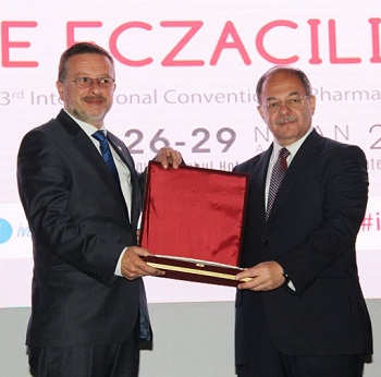 Kongrenin açılış töreninde Kongre Tertip Komitesi tarafından Eczacının Sesi e- Gazetemize de sektörel katkıları nedeniyle bir plaket verildi. Plaketi Yayın Kurulu Başkanımız Ecz. Hakan Gençosmanoğlu, Sağlık Bakanı Recep Akdağ’ dan aldı.
