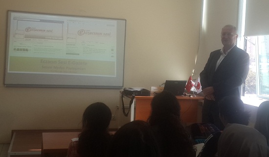 Çiftçi, eczane eczacılığına ilişkin bilgiler verdiği sunumunda eczacılık fakülteleri öğrencileri tarafından yoğun olarak takip edilen e- gazetemiz hakkında da bir bilgilendirme yaptı.