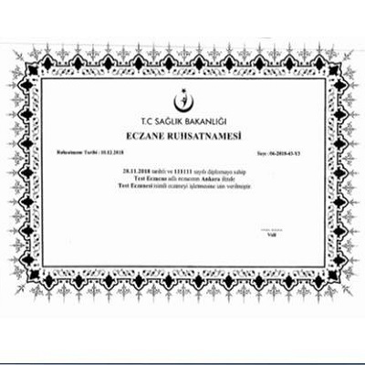 -Yenilenecek ruhsatlarımız üzerinde eczane ismi,eczacı ismi-soyadı, diploma tarihi ve numarası , eczanenin ismi ve bulunduğu il olacak ve valilikçe imzalanacaktır.