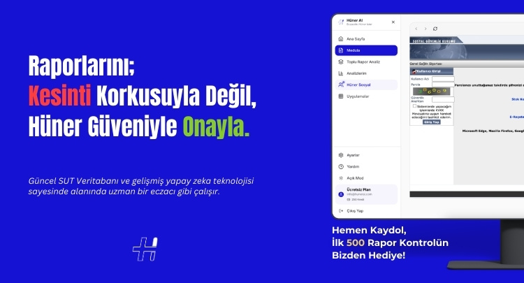 • SUT Uyumluluk Kontrolü: Hasta raporlarını ve reçeteleri Sağlık Uygulama Tebliği (SUT) hükümlerine göre saniyeler içinde analiz eder. Manuel kontrol sürecindeki hata riskini ortadan kaldırır.