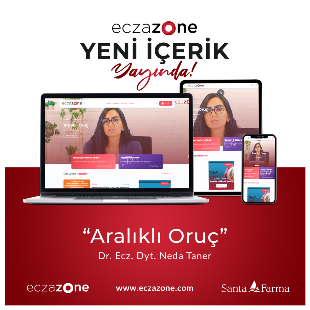 Dr. Ecz. Dyt. Neda Taner'in anlatımıyla "Aralıklı Oruç" içeriğimiz eczazone.com'da ve mobil uygulamamızda sizlerle.