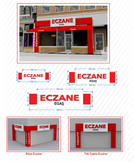 Bilindiği üzere eczane tabela standardı konusunda bir düzenleme yapıldı. Öncelikle yeni açılan ve nakil eczanelerde, akabinde ise mevcut eczanelerde bu uygulamaya geçilecek. Edirne’den Kars’a kadar tüm illerde eczacılarımıza bu konuda hizmet vermekteyiz. Şeffaf fiyat politikamızla eczacılarımız internet sitemizden cephe boyutuna göre yaklaşık ne kadar bir bedel ödeyebileceğini öğrenebiliyor. Yalnız burada dikkat edilmesi gereken tabela üzerindeki ışıklı ve ışıksız bölümlerin, imalat aşamasında kullanılan materyalin mevzuata uygun olması. Maalesef bu konuda birçok eczacımız yerel üreticilerde sorunlar yaşamaktadır. Egaş olarak montajı yapılan tabelalarda uygunluk belgesi ve ürün garantisi vermekteyiz. Üstelik Teb-Egaş yardımlaşma sandığı kredisi kullanımına uygun vade ve taksitli ödeme seçeneklerimiz mevcuttur.