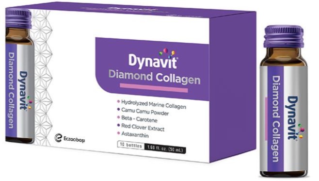 Eczacıbaşı’nın vitamin, mineral ve gıda takviyesi markası Dynavit ailesinden Dynavit Diamond Collagen, içeriğindeki 5000 mg hidrolize balık kollajeni, C vitamini içeriğinden zengin kamu kamu tozu, kırmızı yonca ekstresi, astaksantin ve beta karoten ile cildiniz için “Aradığınız Desteği” sunuyor.