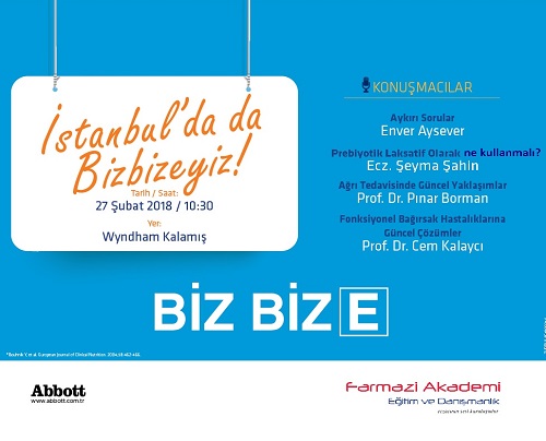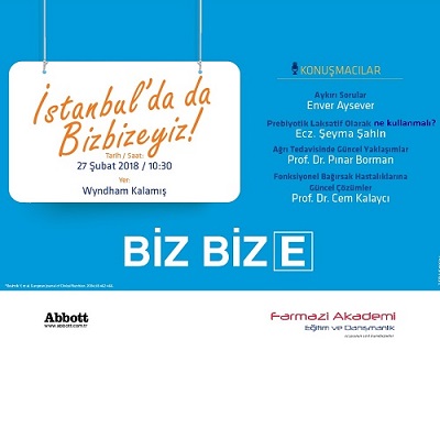 Abbott ve Farmazi Akademi’nin 27 Şubat 2018 Salı günü Saat 10:30’da, İstanbul Wyndham Kalamış Otel’de düzenlediği yemekli eğitim toplantısına davetlisiniz.