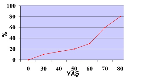 Erektil disfonsiyon (ED) görülme sıklığı yaş ile beraber artar. Tablo aşağıdaki gibidir: