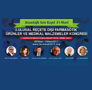 Kendi alanında en iyi konuşmacıların katılımı ile 28 Nisan-1 Mayıs 2017 tarihleri arasında Kıbrıs Girne’de ‘’Katıl, Dinle, Öğren Uygula’’ teması ile gerçekleştireceğimiz kısa adı FARMMED 2017 olan ’’3. Ulusal Reçete Dışı Farmasötik Ürünler ve Medikal Malzemeler Kongresi’’ taslak programı belli olmuştur.