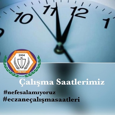 Bilindiği üzere; eczacılık mevzuatı gereği, eczanelerin çalışma saatleri ile nöbet saatleri eczacı odalarınca düzenlenmekte, il sağlık müdürlüklerinin kabul ve onayıyla da yürürlüğe girmektedir. 2Nisan 2020 Perşembe gününden itibaren çalışma saatleri 09.00-18.00 olarak değiştirilmişti. Sabah açılış aynı saatte, kapanış 1 saat öne çekilmişti. Sokağa çıkma yasağı vesilesiyle cumartesi günleri de tatil edilmişti. Cumartesi günleri nöbetçi sayısı 3-5 kat artırılarak vatandaşlarımızın mağduriyet yaşaması önlenerek bugünlere gelindi.