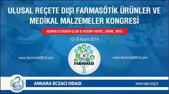 Eczacı Odası olarak meslektaşlarımızın sürekli eğitim ve gelişimini ön planda tutan, mesleki dayanışmanın ve örgütlülük bilincinin üst seviyede olması için çalışan yönetim kurulumuz 13-16 Kasım 2014 tarihleri arasında Girne, Kıbrıs’ta "Ulusal Reçete Dışı Farmasötik Ürünler ve Medikal Malzemeler Kongresi- FARMMED 2014" düzenleyecektir. Kongremize kayıt başlamış olup, kongre ile ilgili detaylı bilgilere www.farmmed2014.com adresinden ulaşabilirsiniz.