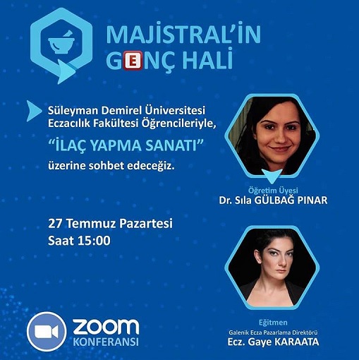 Galenik Ecza Pazarlama Direktörü Ecz. Gaye KARAATA ve Majistral Teknik Uzmanı Ecz. Gülce Erişmiş, öğretim üyesi Dr. Ecz. Sıla GÜLBAĞ PINAR moderatörlüğünde Süleyman Demirel Üniversitesi Eczacılık Fakültesi öğrencileriyle "İlaç Yapma Sanatı" hakkında keyifli bir sohbet gerçekleştirdi.