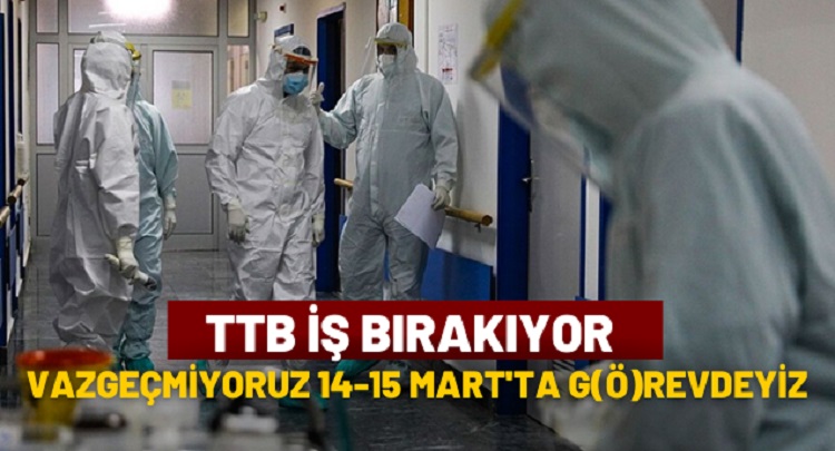 TTB: “Emeğimiz için, haklarımız için, acil taleplerimize yönelik adım atılmaz ise 14-15 Mart Pazartesi ve Salı günleri tüm Türkiye’de, bütün sağlık kurumlarında G(ö)REV’de olacağımızı ilan ediyoruz.”