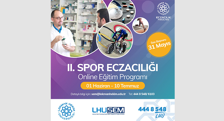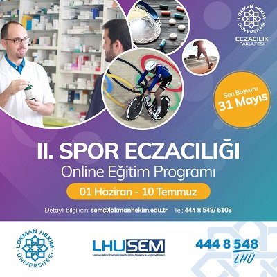 Lokman Hekim Üniversitesi Eczacılık Fakültesi ve Lokman Hekim Sürekli Eğitim Merkezi işbirliği ile 1 Haziran-10 Temmuz 2021 tarihleri arasında online olarak düzenlenecek olan II. Spor Eczacılığı Eğitim Programı’nda eczacılık bilgi ve donanımının sporcu sağlığı alanındaki etkin rolü hakkında detaylı bilgiler aktarılacaktır.