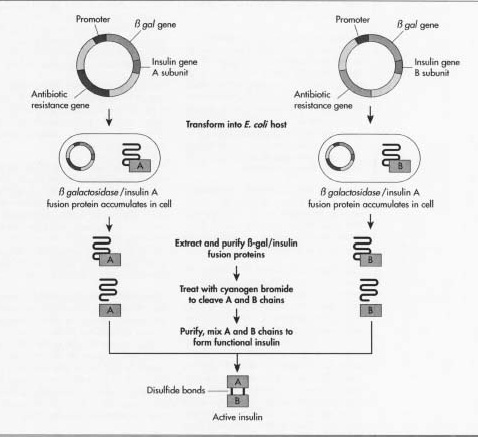 1978 yılında Biogen kuruldu ve aynı yıl rekombinant insan insülini E. coli bakterisi ve maya kullanımı ile üretildi. (1,2)