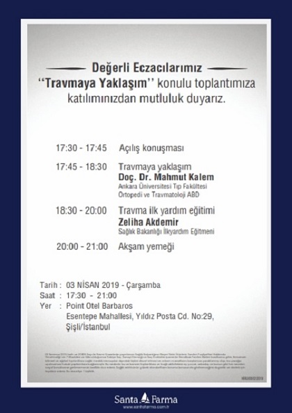 Santa Farma ve Farmazi Akademi’nin 3 Nisan 2019 Çarşamba günü saat 17:00’de, Point Otel Barbaros-İstanbul’da düzenlediği yemekli eğitim toplantısına davetlisiniz.