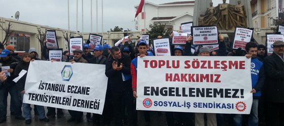 DİSK’e bağlı Sosyal-İş Sendikası’nda örgütlenen İstanbul Eczacılar Kooperatifi (İSKOOP) işçileri, işverenin sendikanın yetkisine yaptığı itiraz nedeniyle eyleme geçti.