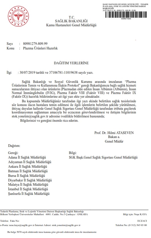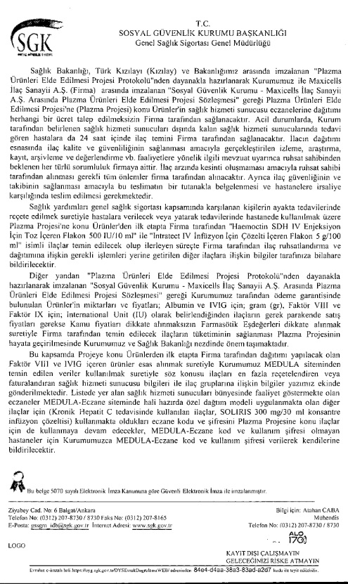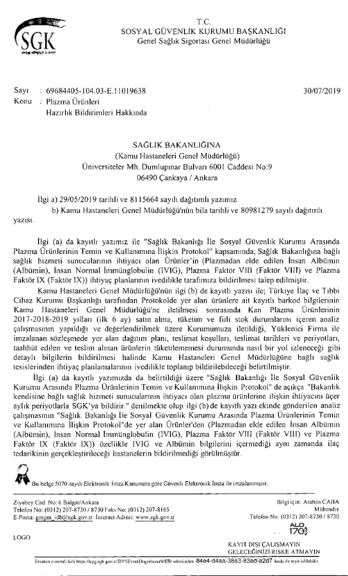 Konuya ilişkin SGK’ nın, Sağlık Bakanlığı’ na yazdığı, yeni düzenlemeyi açıklayan 30 Temmuz 2019 tarihli resmi yazı e- gazetemize ulaştı.
