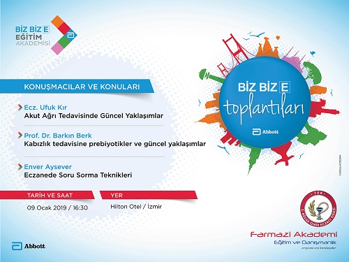 Abbott ve Farmazi Akademi’nin 09 Ocak 2019 çarşamba günü saat 16:30’da, İzmir- Hilton Otel’de düzenlediği yemekli eğitim toplantısına davetlisiniz.