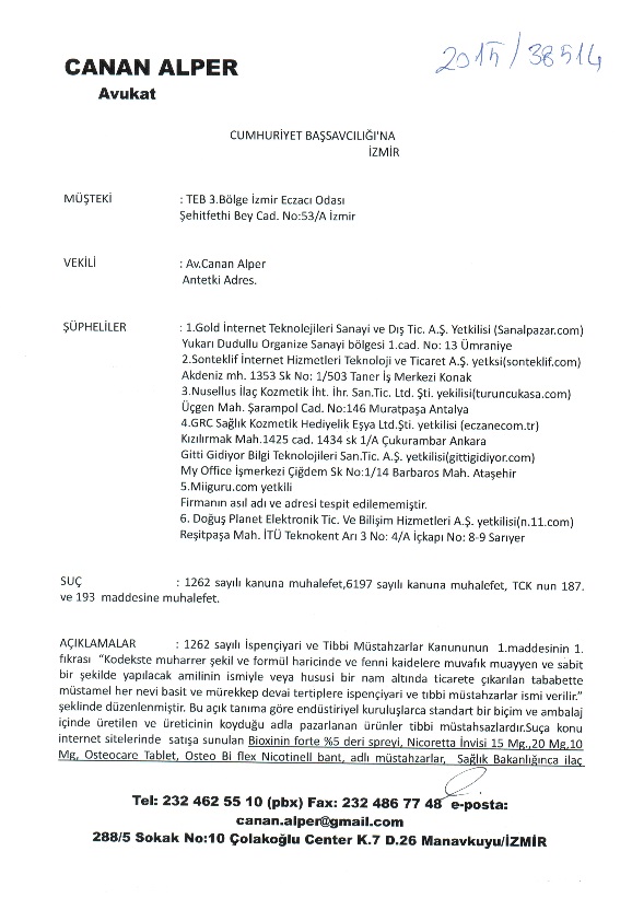 İzmir Eczacı Odası yasadışı internet satışlarına ilişkin suç duyurusunda bulundu: