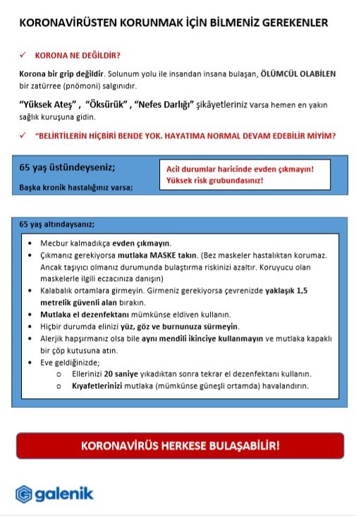 “KORONAVİRÜSTEN KORUNMAK İÇİN BİLMENİZ GEREKENLER” broşürümüz hizmetinizdedir.