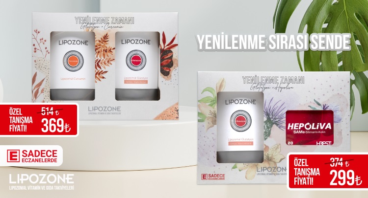 Türkiye'nin ilk lipozomal vitamin ve gıda takviye serisi Lipozone'dan 2 özel avantajlı paket kampanyası başladı. Lipozone'un sunduğu bu 2 avantajlı paket içerisinden ilki Lipozone Glutatyon 180 mg ve Lipozone Curcumin ürününden oluşuyor, diğer paket ise Lipozone Glutatyon 180 mg ve Hepoliva ürünlerini içeriyor.