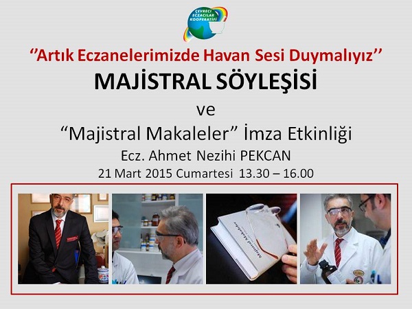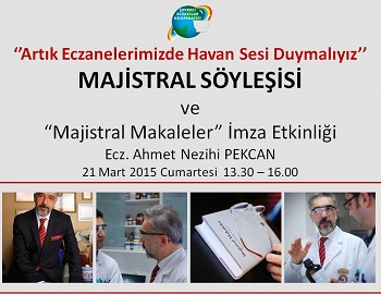NOT: Söyleşi bitiminde Ecz. Ahmet Nezihi Pekcan’ ın “Majistral Makaleler” isimli kitabı için imza etkinliği yapılacaktır.