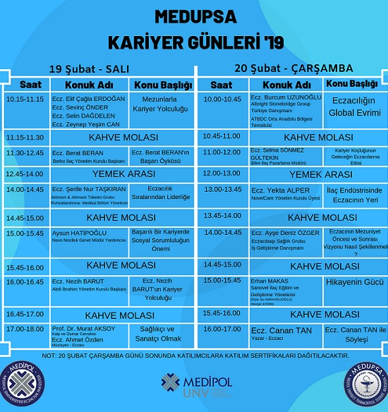 İstanbul Medipol Üniversitesi Eczacılık Fakültesi bu yıl yine “Kariyer Günleri” etkinliği düzenliyor. Etkinlikte eczacılık sektörünün lider isimleri bir araya geliyor.