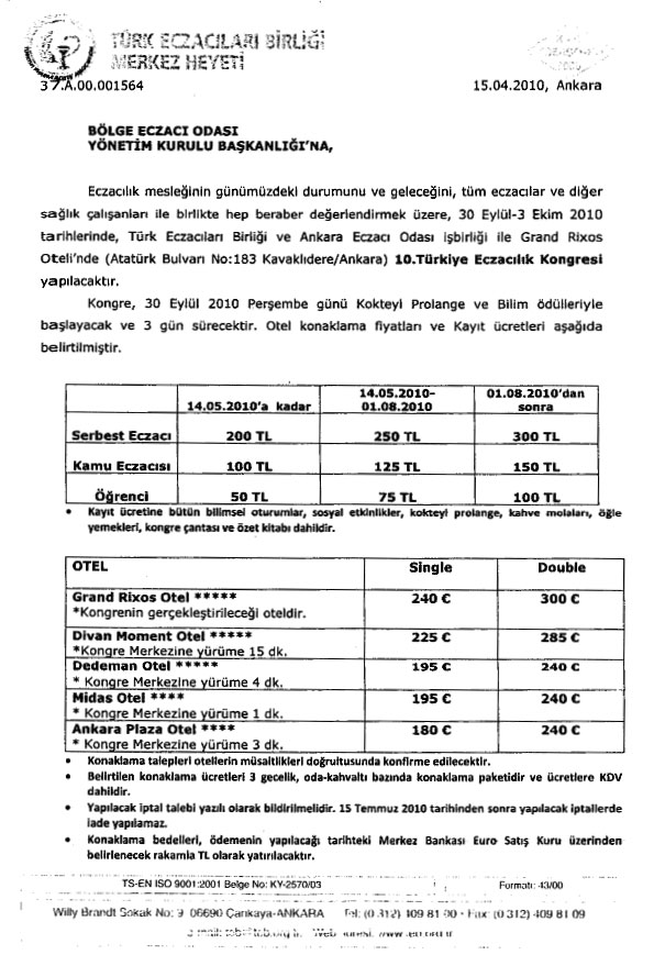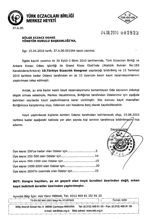 İlgi olmayınca,TEB ve Ankara Eczacı Odası’ nın düzenlediği kongreye odalardan zorunlu katılım istendi.