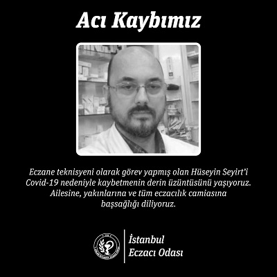 Eczane teknisyeni Hüseyin Seyirt Covid- 19 nedeniyle hayatını kaybetti.
