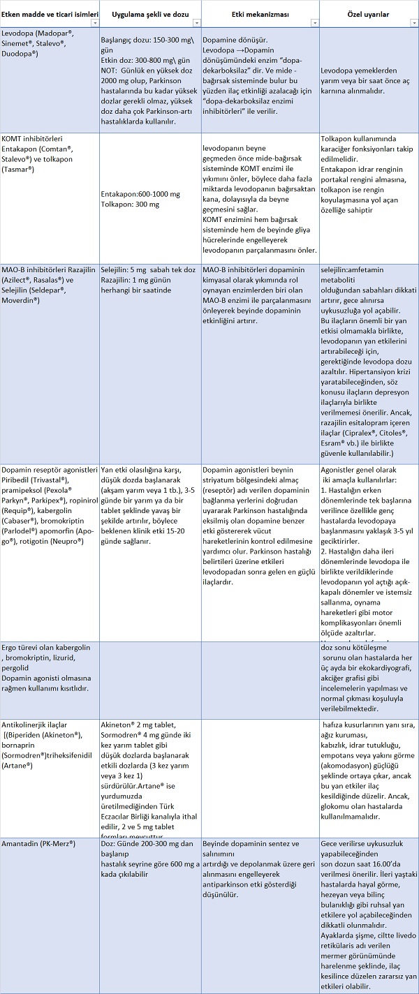 Parkinson tedavisi ve kullanılan ilaçlar: