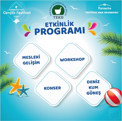 28 Haziran günü TEKB Yönetim Kurulu Başkanı Ecz. Mustafa Turunç’un açılış konuşmasıyla başlayacağı festivalde ana sponsor Pharmactive çeşitli workshoplarla genç eczacıların gelecekte yararlanabilecekleri eğitimlere imza atacak. Pharmactive İlaç bünyesinde görev yapan profesyoneller; Benim Eczanem, Sen De İçimizdeki Eczacılardan Ol ve İçimizdeki Eczacılar başlıklı workshoplarda genç eczacılarla biraraya gelecek.