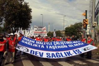 Dev Sağlık – İş Genel Başkanı Arzu Çerkezoğlu ise, konuşmasına sağlıkçıların emeğinin sömürüldüğüne ve hükümetin kendi yasalarını bile çiğnediğine değinerek başladı. Çerkezoğlu, “Eğer bizim temel haklarımız sizin yasalarınıza sığmıyorsa, o yasaları yeniden yazmak boynumuzun borcudur” dedi. Dev Sağlık – İş’e örgütlendikleri gerekçesi ile işten çıkarılan Kızılay ve Okmeydanı hastanesi çalışanlarının mücadelesinin sürdüğünü ekleyen Çerkezoğlu konuşmasını, IMF – DB ve AKP’nin neo liberal politikalarına karşı 25 Ekim’de Ankara’da, 7 Kasım’da TBMM’nin önünde olacaklarını ve 25 Kasım’da da kamu çalışanları ile grevde olacaklarını duyurarak sonlandırdı. Daha sonra İstanbul Tabip Odası Başkanı Özdemir Aktan, İstanbul Diş Hekimleri Odası Başkanı Mustafa Düğencioğlu ve Veteriner Hekimleri Odası Başkanı Tahsin Yeşildere birer konuşma yaptılar.