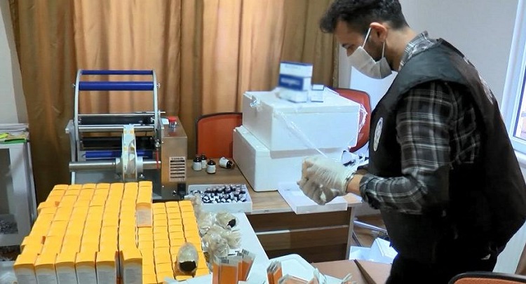 İstanbul Emniyet Müdürlüğü Güvenlik Şube Müdürlüğü ekipleri tarafından yaklaşık 20 gün süren fiziki ve teknik takip sonucu Bulgurlu Mahallesi’ndeki bir apartmanın alt katında sahte vitamin ilaçları üretildiği ve bu ürünlerin bir klinikte hastalara uygulandığı tespit edildi.