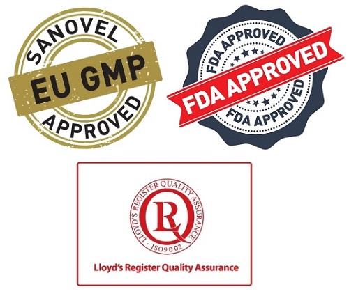 2009 yılında Alman Sağlık Bakanlığı tarafından denetlenerek EU GMP onayı alan üretim tesisi, 2013 yılında Almanya ve 2016 yılında ise İspanya Sağlık Bakanlığı tarafından denetlenerek EU GMP onaylarını devam ettirmiştir.