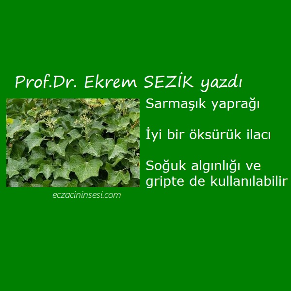 Bahçelerimizde hâttâ evlerimizde duvarların süsü sarmaşık, son yıllarda yapılan çalışmalarla iyi bir öksürük ilacı oldu. Sarmaşık (Hedera helix) yaprakları Avrupa’da halk ilacı olarak soğuk algınlığı ve öksürüğe karşı kullanılan sarmaşığın, daha sonra değişik preparatları üretilmiş ve aynı amaçlar için kullanılmaktadır. Son 20 yılda yapılan bilimsel araştırmalar sonucu bitkisel ilaç olarak piyasadaki yerini aldı..."